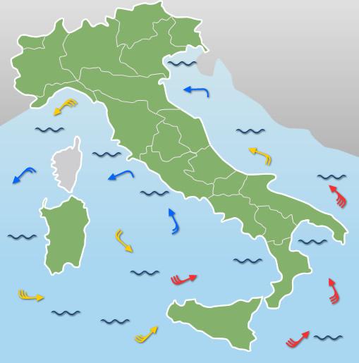 Al Sud e sulle Isole: Al mattino cieli irregolarmente nuvolosi con precipitazioni sparse tra Campania, Puglia e Calabria, sereno o poco nuvoloso sulle Isole. Al pomeriggio isolati piovaschi sulle coste della Campania e sulla Puglia, coperto su Sardegna e Sicilia. In serata peggiora dapprima sulla Sardegna con piogge sparse; nella notte fenomeni anche su Campania e Molise. Temperature minime in rialzo e massime stazionarie o in lieve calo. Venti moderati o forti dai quadranti meridionali o sud-orientali. Mari molto mossi o agitati.